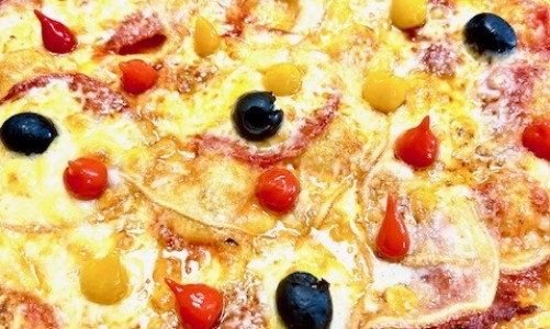 Toutes nos pizzas sont garnies d'olives et découpées en parts… vous avez un apéritif dînatoire, nous pouvons les découper en petits carrés, il suffira simplement de nous le préciser lors de votre commande.