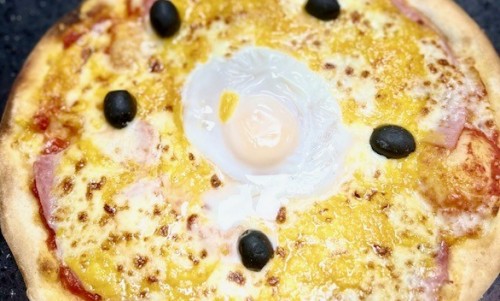 Tomate, bacon, mozzarella, oignons caramélisés et oeuf